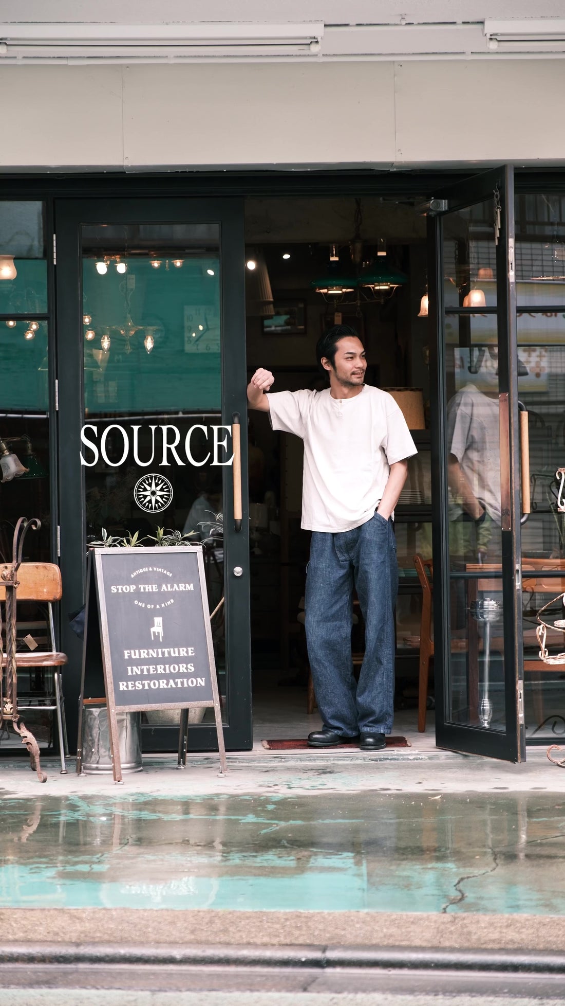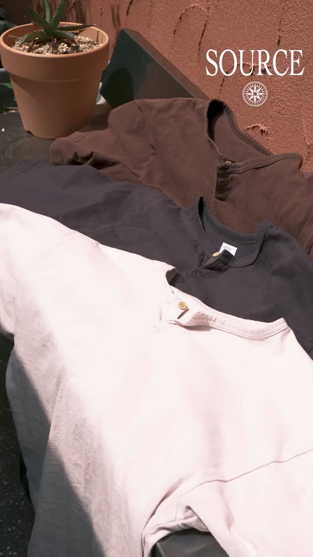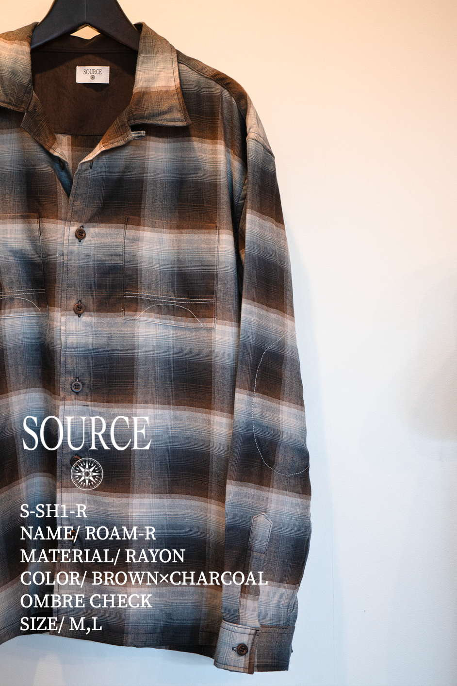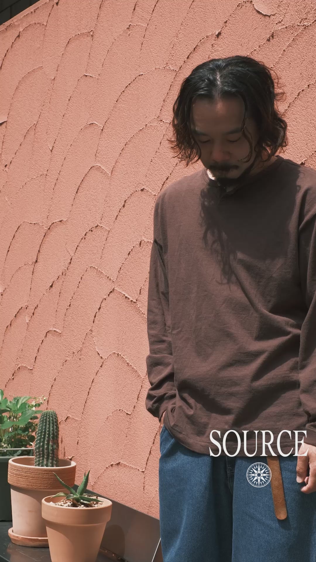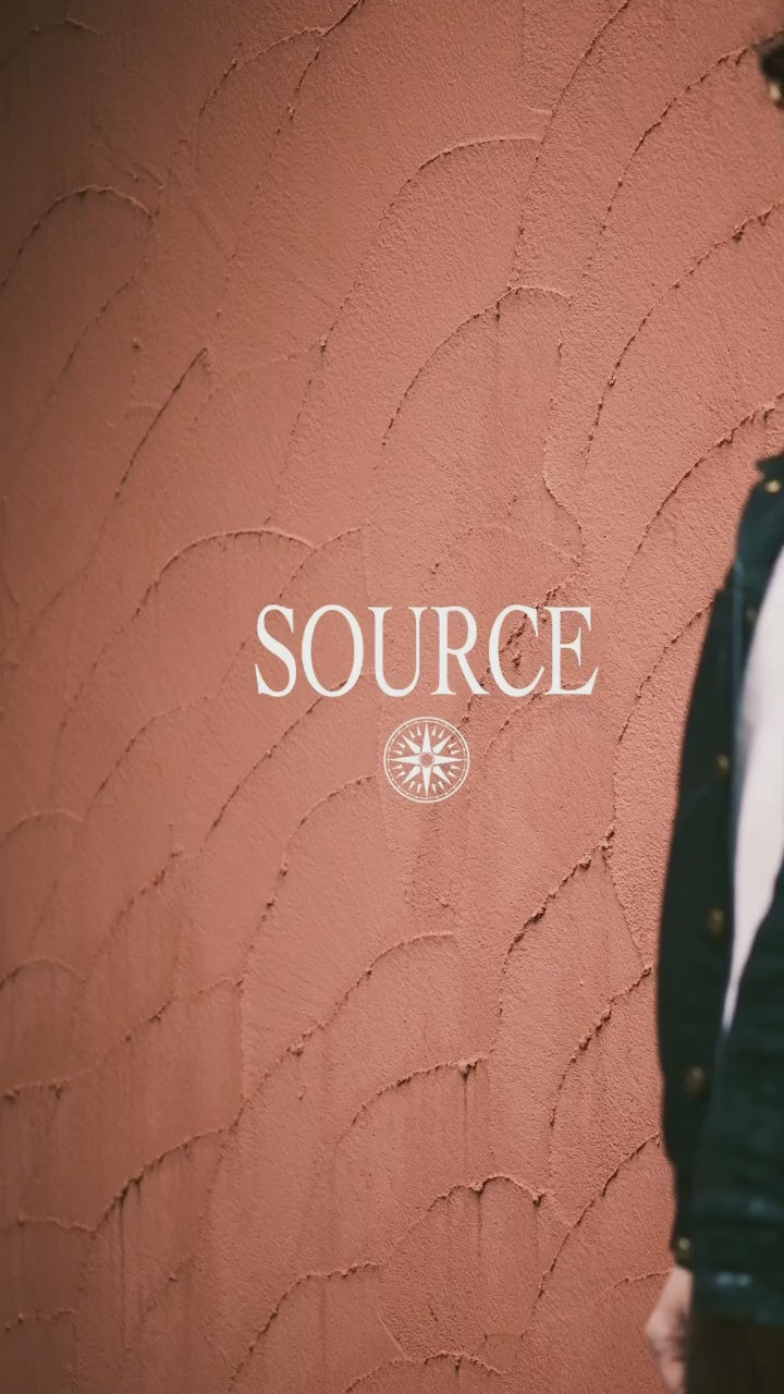 デザイナーのスタイルの基盤となっているビートカルチャー、国、音楽、5-60年代のヴィンテージアーカイブスを"源流"という言葉で括り、英語で "SOURCE"という名前を付けました。それらは自身の源でもあり、今もなお自身の中で流動し、創造する。シンプルかつ撚りのあるデザインで、”古着には無く、かつ古着に合う物”をコンセプトにオルタナティブな精神のもとリアルクローズなアイテムを展開。