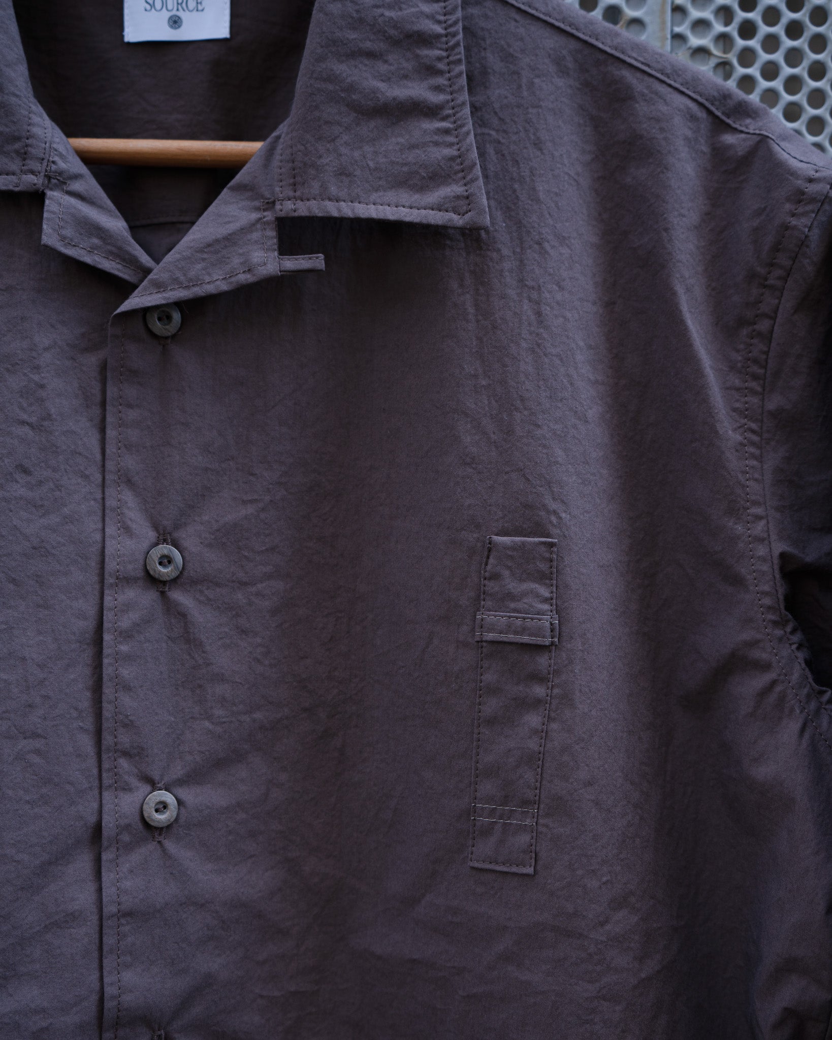 薄手のコットン100%のタイプライター生地を選定したオープンカラーのボックスシャツ。