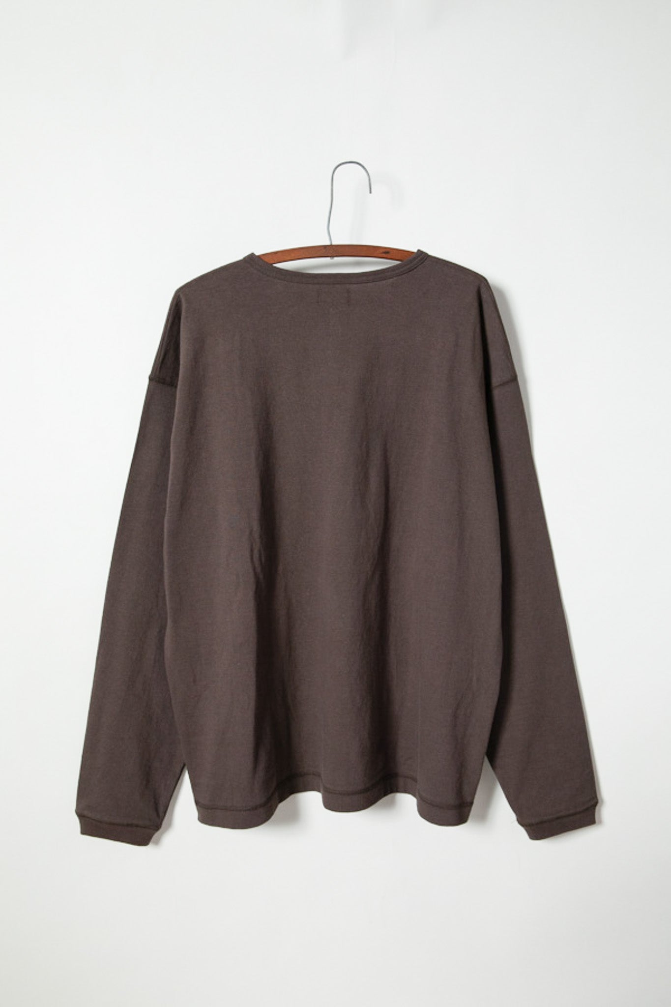 定番的でオールドなヘンリーTシャツのイメージをSOURCEでは壊したく、ネックが浅めの1つボタンという点にボタンのサイズも従来のものは13mm程度の物が多く見られますが、SOURCEの物は10mmの物を採用しました。
