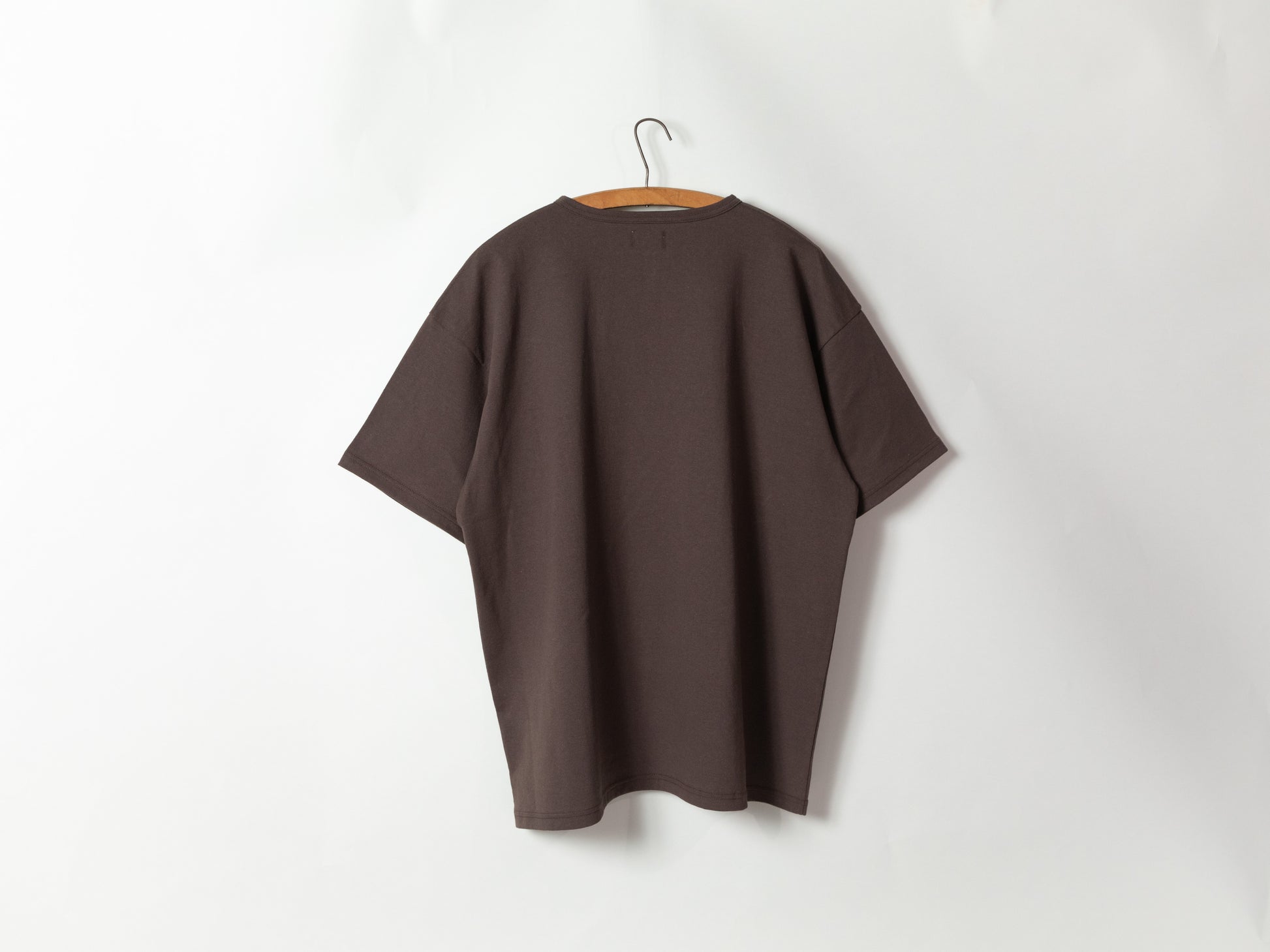 定番的でオールドなヘンリーTシャツのイメージをSOURCEでは壊したく、ネックが浅めの1つボタンという点にボタンのサイズも従来のものは13mm程度の物が多く見られますが、SOURCEの物は10mmの物を採用しました。